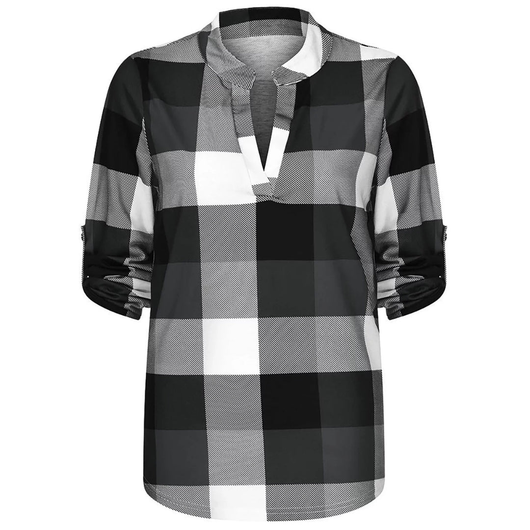 Chemisier grande taille à carreaux – Col V et confort décontracté