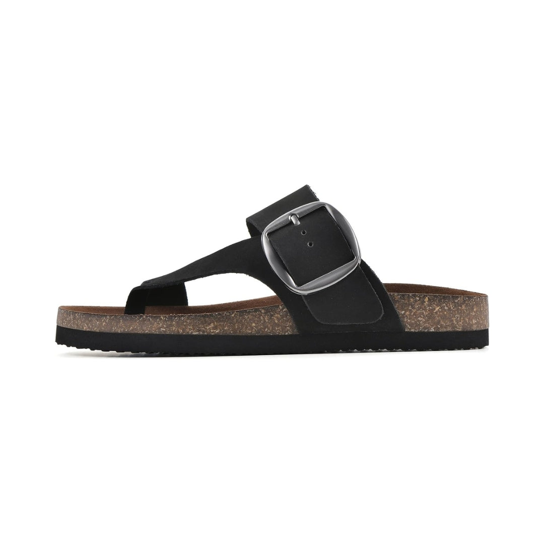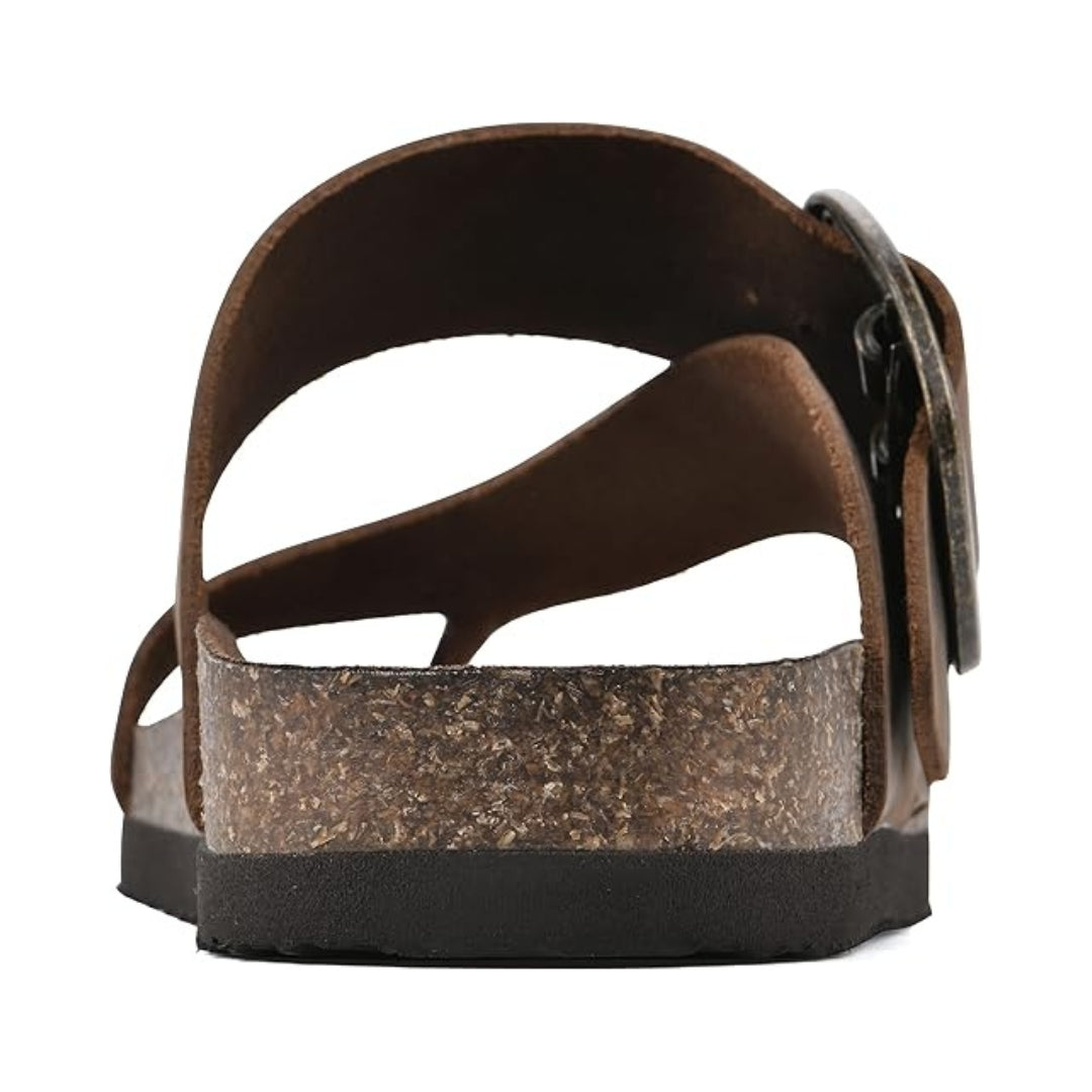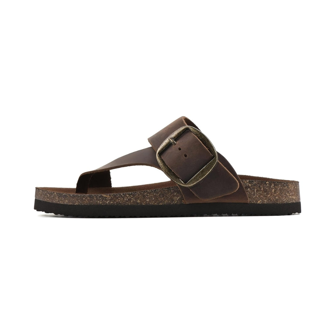 La large sangle en cuir et la boucle réglable permettent un ajustement personnalisé, tandis que la forme tong maintient le pied tout en laissant une sensation de légèreté. Faciles à porter, ces sandales deviendront vite un essentiel de votre garde-robe estivale, que ce soit pour les sorties détente, les balades ou les moments de repos.