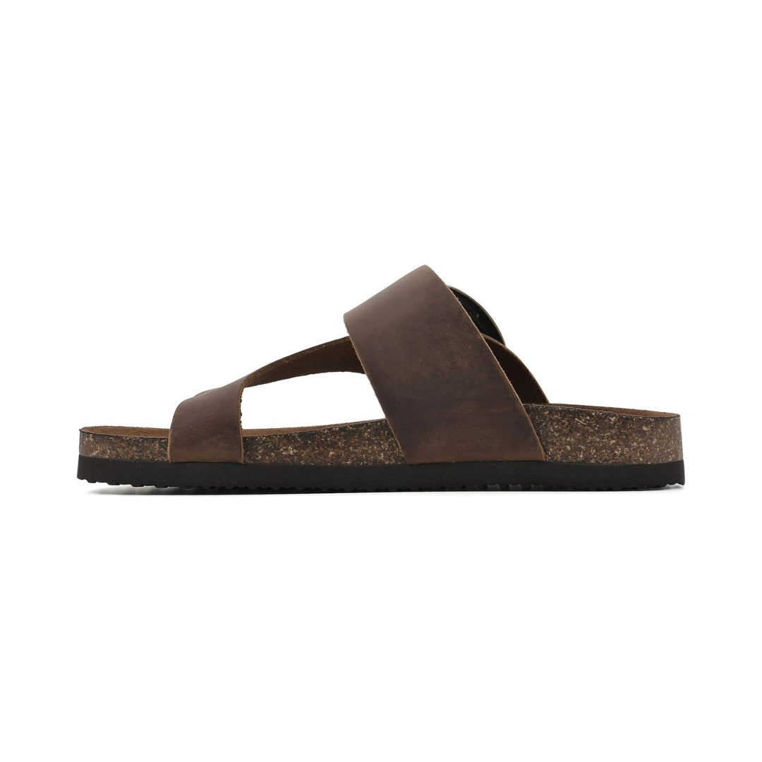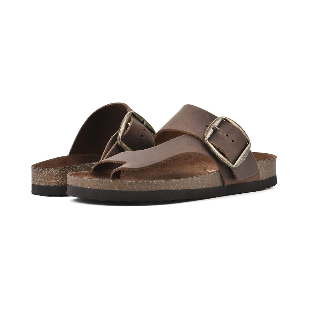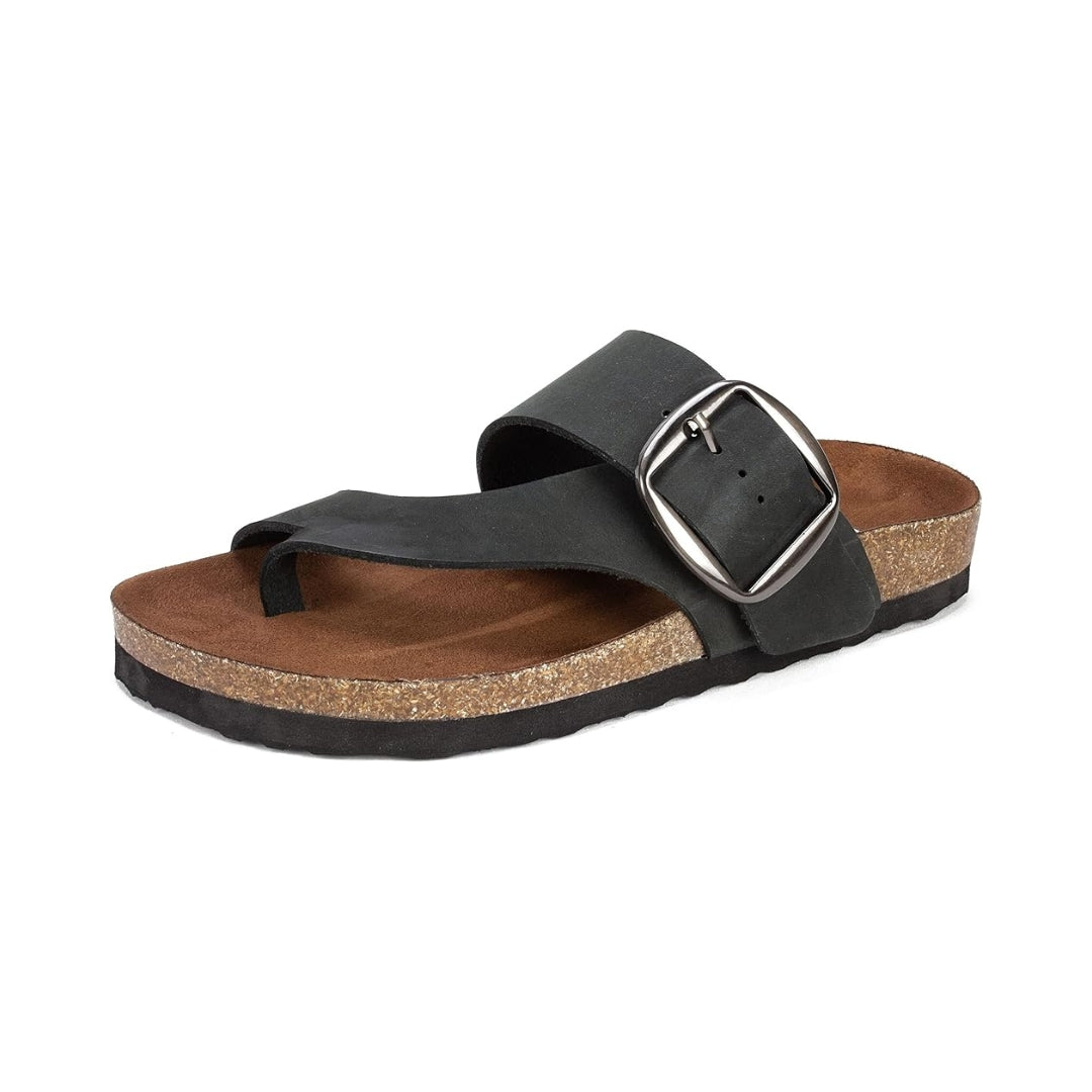 La large sangle en cuir et la boucle réglable permettent un ajustement personnalisé, tandis que la forme tong maintient le pied tout en laissant une sensation de légèreté. Faciles à porter, ces sandales deviendront vite un essentiel de votre garde-robe estivale, que ce soit pour les sorties détente, les balades ou les moments de repos.