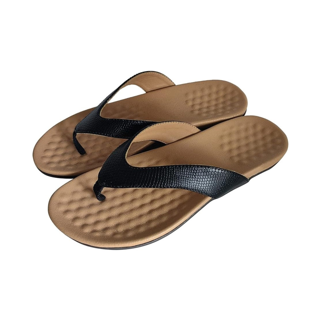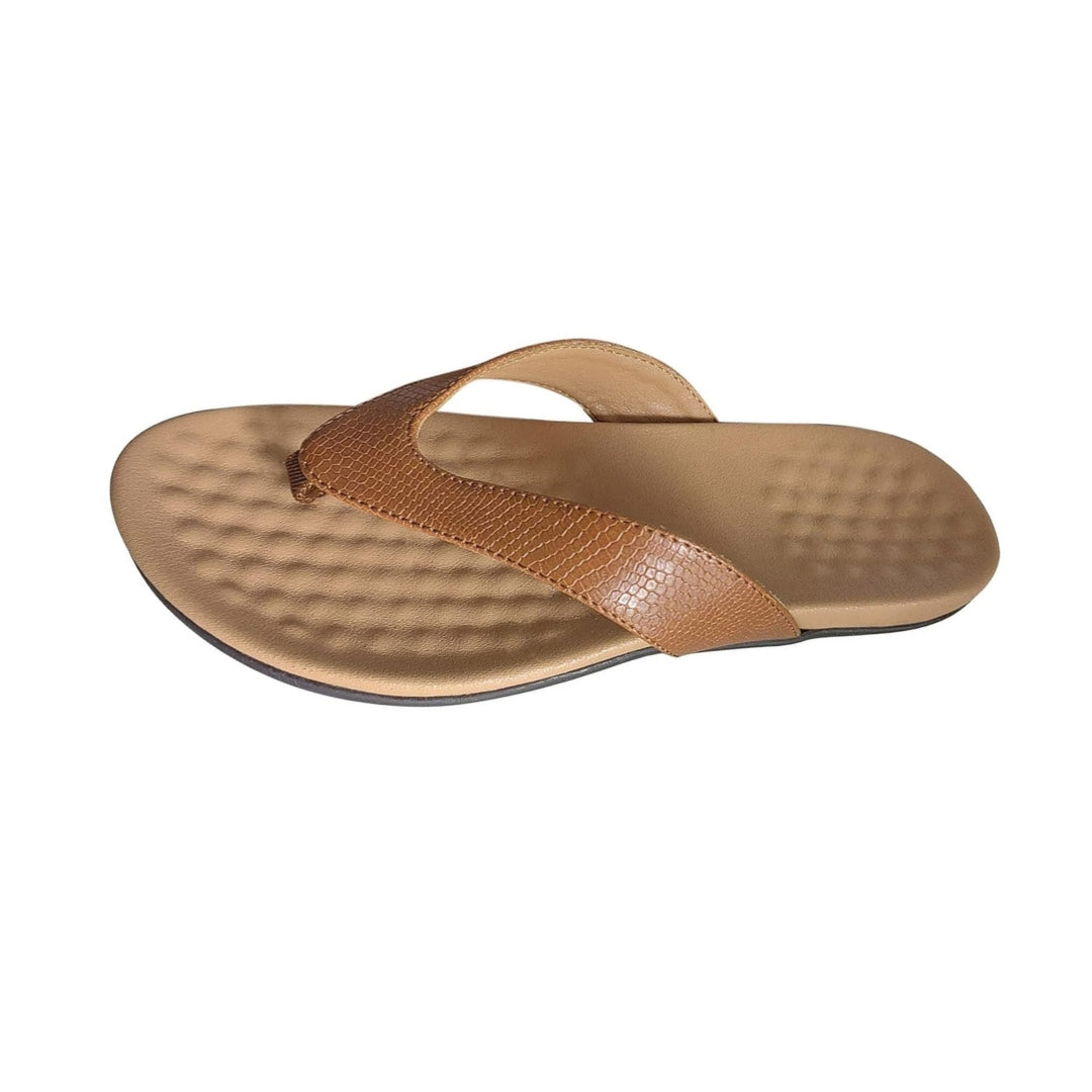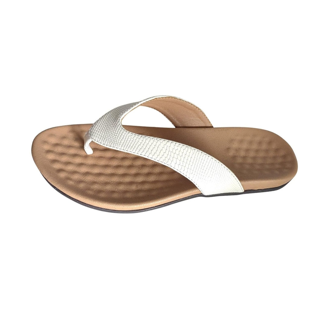 Dessus de la sandale : Fabriqué en polyuréthane (PU) doux et résistant, il présente une texture légèrement grainée pour un rendu chic et discret. Le design en Y, façon tongs habillées, maintient bien le pied tout en laissant respirer la peau.