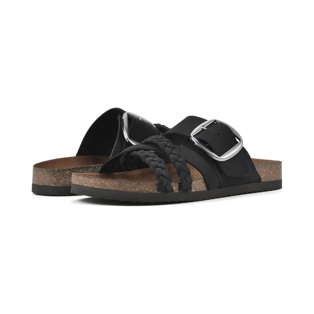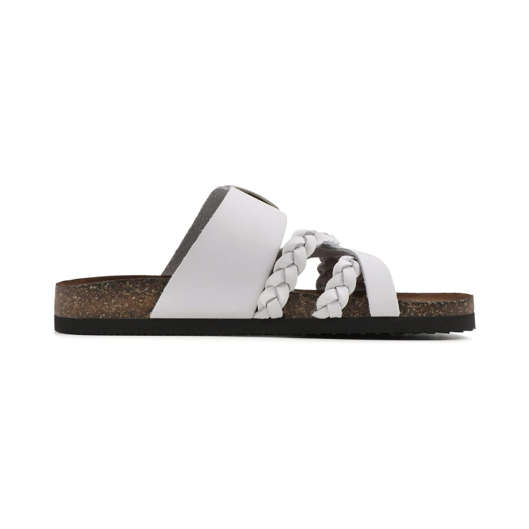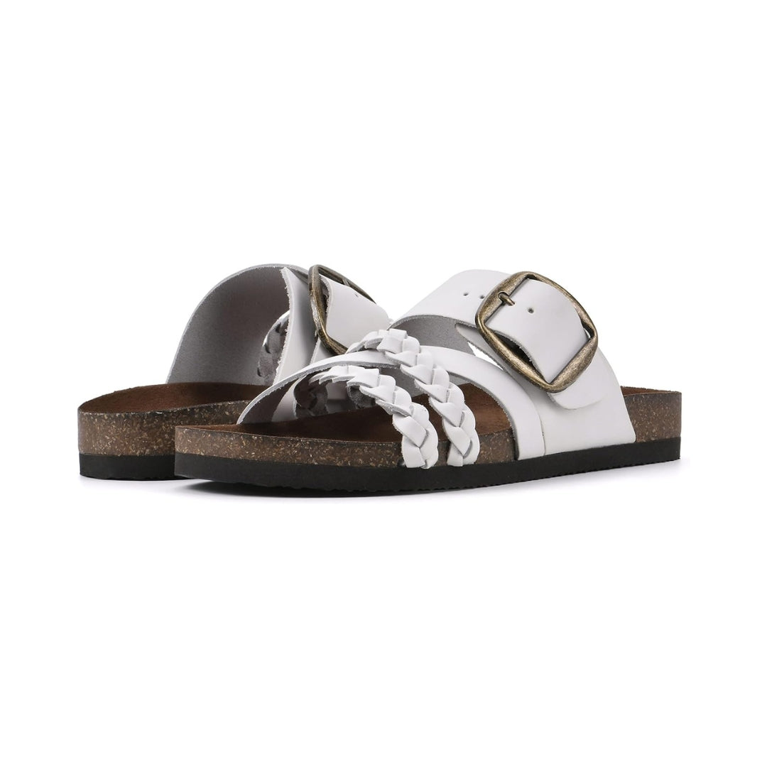 Leur semelle intérieure profilée épouse la forme naturelle du pied pour offrir un soutien optimal, tandis que la large sangle tressée garantit un maintien sûr tout en ajoutant une touche de caractère. La boucle réglable permet d’ajuster la sandale à votre morphologie pour un confort sur mesure.
